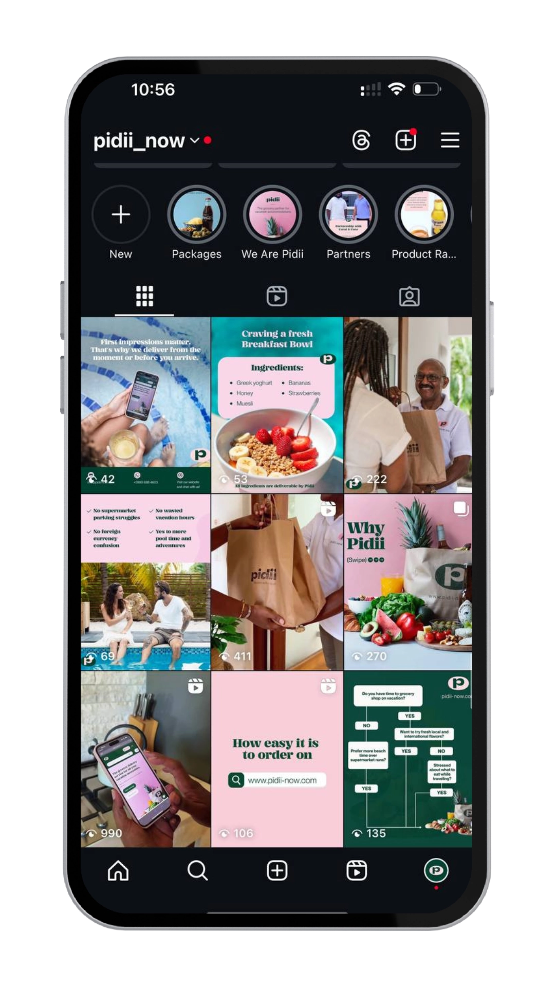 Our work with Pidii focuses on creating high-quality content and running ad campaigns that highlight convenience, speed, and fresh products. We developed a social media strategy to showcase product variety, and fast service, while managing paid campaigns to increase conversions. This mix of organic content and performance marketing boosted their visibility and brought in more online orders.